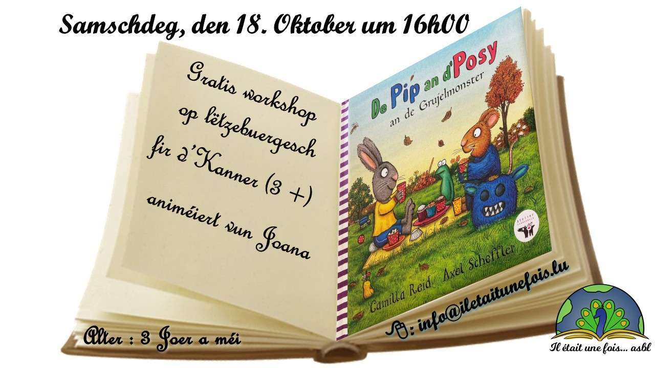 Gratis Liesung fir d'Kanner (3 Joer+) op Lëtzebuergesch animéiert vun Joana - 25. Octobre 2025de 15h à 16h30 AT251025FR