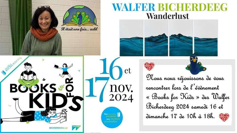 ![]() | WALFER BICHERDEEG 2024 - Books for Kids17. Novembre 2024 | de 10h00 à 18h00Dimanche 17 Novembre 2024, de 10h à 18h, nous aurons le plaisir de vous retrouver lors de l'incontournable évènement Books for Kids des Walfer Bicherdeeg à Walferdange. Notez que nos locaux (situés à Gasperich) seront ouverts. Vous pourrez ainsi consulter / emprunter quelques-uns de nos nombreux livres ou participer à un de nos deux ateliers hebdomadaires. #WalferBicherdeeg #Kannerbuch #Livresenfants #iletaitunefois #Booksforkids |