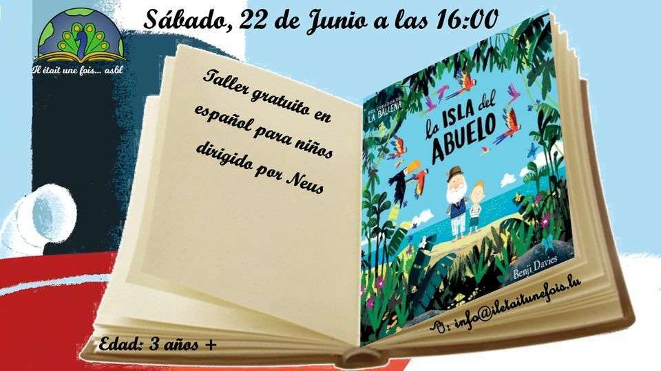 ![]() | *** COMPLET *** Taller gratuito en español para niños dirigido por Neus (3+)22. Juin 2024 | de 16h00 à 17h00 Code d'activité : AT220624ES*** COMPLET *** Taller gratuito en español para niños dirigido por Neus ( 3 años +) Lugar: Il était une fois... asbl Duración: 1 hora Libros: La isla del abuelo Registration: info@iletaitunefois.lu Sírvase indicar la edad y el nombre del niño. Presencia obligatoria de un adulto con el niño. 1) Lucia 2) Carla 5 3-4) Gabriel & Natalia 5) Daniel 3 6-7) Valentin 5 & Rafaël 3 8) Félix 3 9-10) Daniel 5 et Martin 6 |