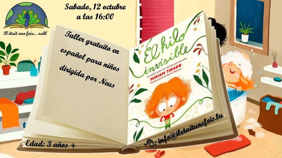![]() | Taller gratuito en español para niños dirigido por Neus ( 3 años +)12. Octobre 2024 | de 16h00 à 17h00 Code d'activité AT121024ESTaller gratuito en español para niños dirigido por Neus ( 3 años +) Lugar: Il était une fois... asbl Duración: 1 hora - - - - - - - - - - - - - - - - - - Libros: El hilo invisible. Escrito por Míriam Tirado Un cuento sobre los vínculos que nos unen con quien más queremos. - - - - - - - - - - - - - - - - - - Registration: info@iletaitunefois.lu Se recomienda reservar (cupo limitado) Sírvase indicar la edad y el nombre del niño, así como el código de actividad: AT121024ES Presencia obligatoria de un adulto con el niño. 1) Darío 3ans 979 2) Matteo 3 3) Oliver 3 4) Carla 5 5) Gabriel 3 + Natalia 2 6) Carlotta 7) Chiara 3 8) Oliver 3,5 ¡Gracias y hasta pronto |