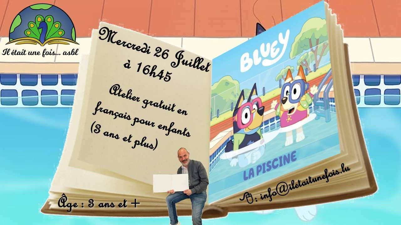 ![]() | Atelier de lecture interactive gratuite en français (3+)19. Juillet 2023 | de 16h30 à 17h30 Code activié AT190723FRAtelier de lecture interactive pour enfants Langue: français âge: 3 ans et plus Présence d'un adulte indispensable avec l'enfant Prix: gratuit Livre: La piscine Bluey - - - - - - - - - - - - - - - - - - - - - - Bluey et Bingo vont à la piscine avec Papa Qu'est-ce qui pourrait mal se passer ? - - - - - - - - - - - - - - - - - - - - Inscription : info@iletaitunefois.lu (merci d'indiquer le code AT190723FR, le prénom et l'âge de l'enfant) 1) 2) 3) 4) 5) 6) 7) 8) 9) 10) |