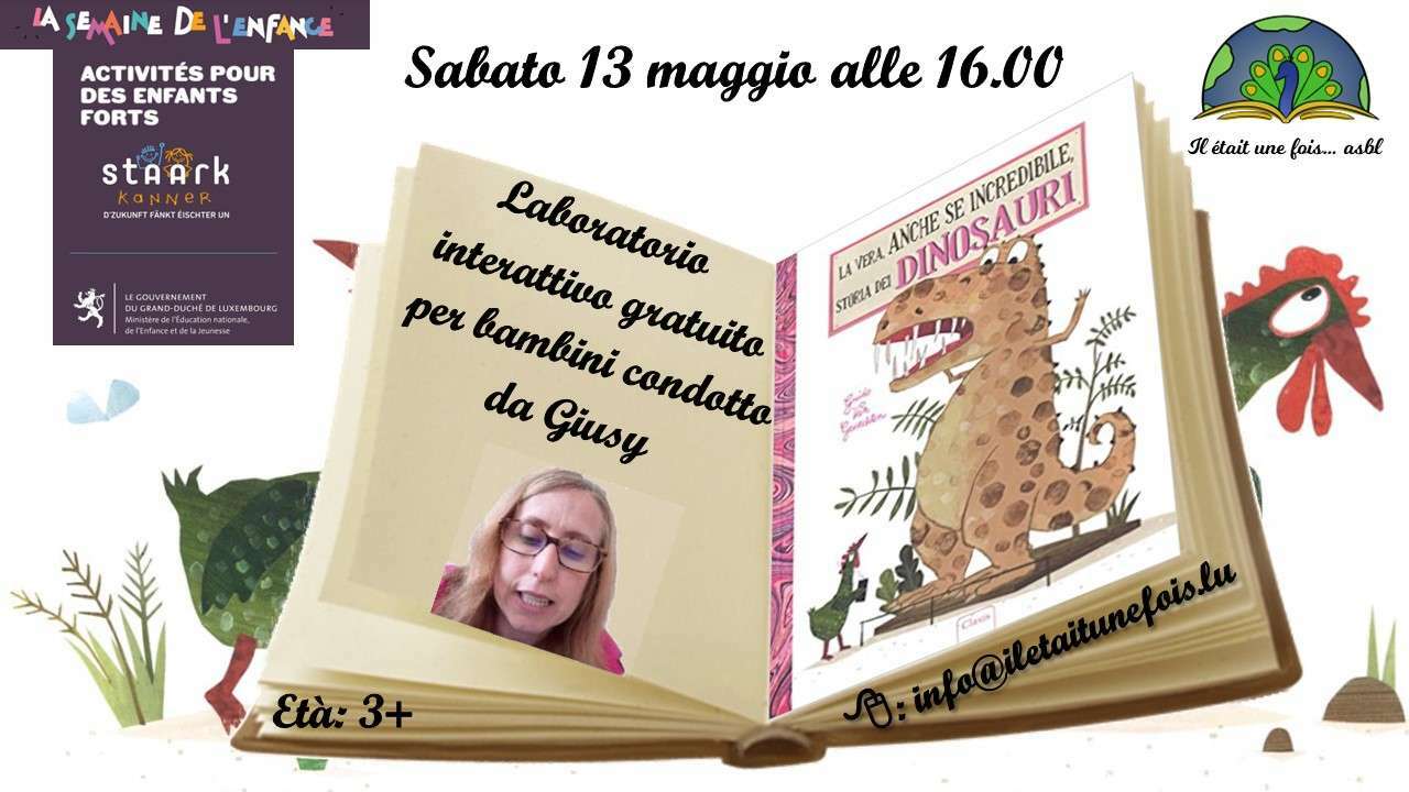 ![]() | 2ème édition de la semaine de l'enfance / Laboratorio interrativo gratuito per bambini (3+) condoto da Giusy13. Mai 2023 | de 16h00 à 17h00 Code d'activité : PR130523ITLaboratorio interrativo gratuito per bambini (3+) condoto da Giusy Lingua: italiano età: 3 anni + Località: Abbazia di Neumünster Prezzo: gratuito Durata: un'ora Registrazione : info@iletaitunefois.lu Libro: "La vera, anche se incredibile, storia dei dinosauri" de Guido Van Genechten - - - - - - - - - - - - - - - - - - - - - - - - - - - - - - - - - Tutti pensano che i dinosauri siano estinti. Ma, sarà proprio così? E se ti dicessi che sono vivi e vegeti e che, addirittura, vivono in mezzo a noi? La prova? Un autentico album con fotografie risalenti a milioni di anni fa e mai viste prima! Una storia, incredibile ma vera, sui dinosauri! Dai 4 ai 250 milioni di anni. - - - - - - - - - - - - - - - - - - - - - - - - - - - - - - - - - Fai da te: Dinosauri - - - - - - - - - - - - - - - - - - - - - - - - - - - - - - - - - |