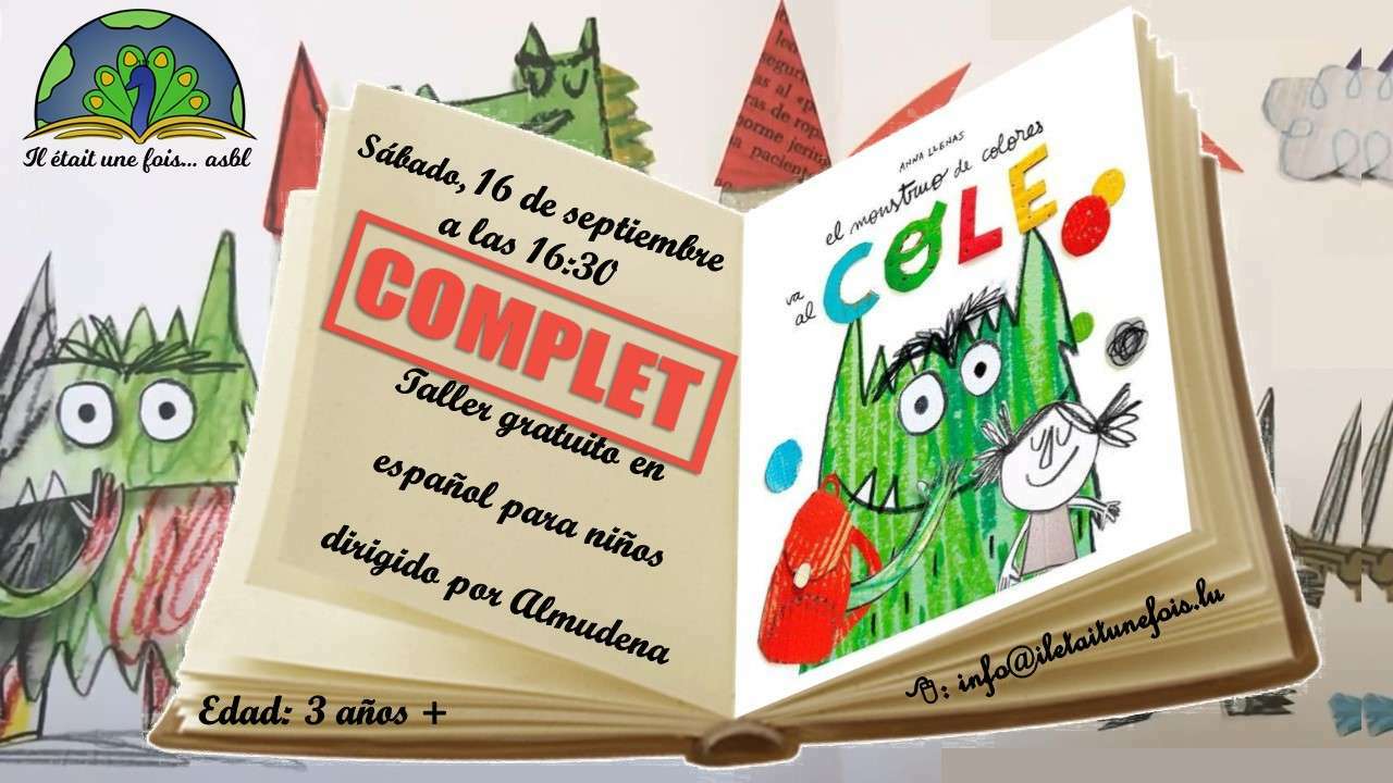 ![]() | Taller gratuito en español para niños dirigido por Almudena (3+)16. Septembre 2023 | de 16h30 à 17h30 - Code activité AT160923ES ***COMPLET***Taller gratuito en español para niños dirigido por Almudena ( 3 años +) Libro : " El Monstruo de Colores va al cole" Texto de Anna Llenas Ha llegado el primer día de escuela y el monstruo de colores está un poquito nervioso. ¿Cómo vivirá esta experiencia? ¿Qué se encontrará en este nuevo mundo que es la escuela? Nuevas aventuras del "best-seller" internacional El Monstruo de Colores, de Anna Llenas. Registration: info@iletaitunefois.lu Sírvase indicar la edad y el nombre del niño. Presencia obligatoria de un adulto con el niño. |